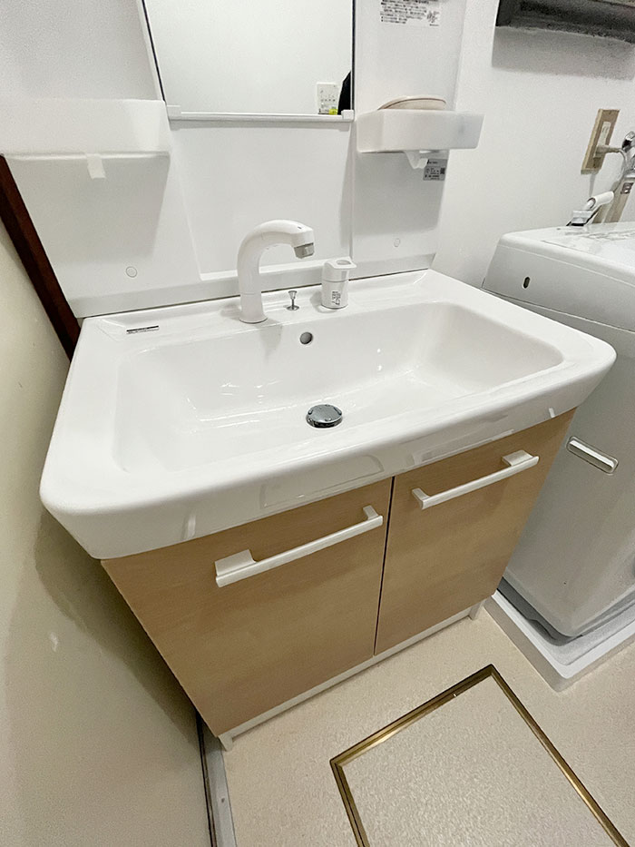「お掃除を簡単にできるようにしたい」とご希望されていましたので、オプション内容のカウンターや鏡は無くし、スッキリとした空間となりました。